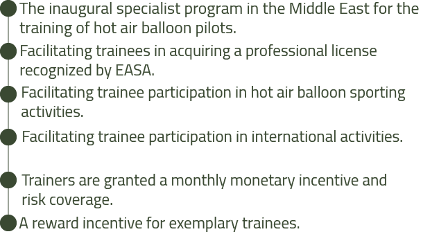 In addition to bolstering the ballooning community and drawing adventure seekers from all over the world, our mission is to bring ballooning to the Kingdom through the establishment of a training center that offers internationally recognized programs taught by qualified instructors.